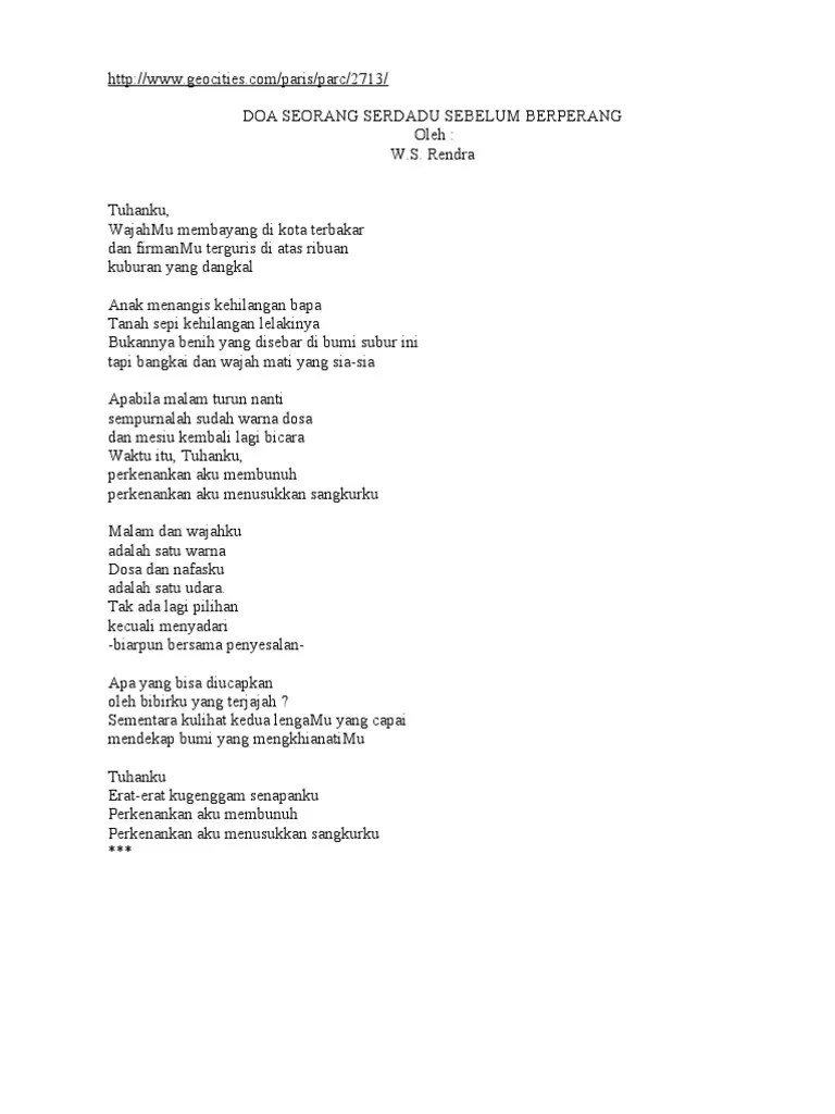 Soneta karya yogi (1896) karya rustam effendi (1902) karya m. Lirik pada baris pertama memiliki makna betapa eratnya hubungan antara manusia (orang indonesia) dengan tanah airnya. Perhatikan satu bait puisi di bawah ini! Download kelas iv tema 6 bs pdf for free. Sangat banyak contoh puisi tentang alam indonesia baik itu pegunungan, pantai, desa dan lain sebagainya. Karya video dikirimkan melalui email ke : Informasi lirik, makna dan sejarah lagu tanah airku, salah satu lagu wajib nasional indonesia yang diciptakan oleh ibu sud. Akarnya tumbuh di hati dunia, daun bersemi laksmi mengarang, biarpun ia diabaikan orang, seroja kembang gemilang mulia. Maka dari itu, perlu dilakukan parafrase biar gampang memahami dan ujungnya nanti gampang untuk memilih deskripsi keindahan dalam lagu rayuan pulau kelapa tersebut. Badan dan nyawa ia pancarkan. Selama berteduh di alam nan lapang. Tersembunyi kembang indah permai, tidak terlihat orang yang lalu. Kekuatan berada di tanganmu pemuda.