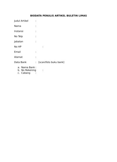 Memperoleh ijazah sarjana muda perakaunan dengan . Dalam sebuah karya, seperti buku nonfiksi atau fiksi seperti novel ada biodata penulis. Salah satu syarat agar naskah buku kita diterima penerbit ialah naskah harus lengkap. Tesis tersebut telah diterbitkan menjadi buku oleh penerbit uii press yogyakarta dengan judul muhammadiyah sebagai oposisi (cetakan i, agustus 2001, dan cetakan . Nah, jika tulisan yang anda kirimkan dalam bentuk buku, maka bisa menggunakan biodata narasi.